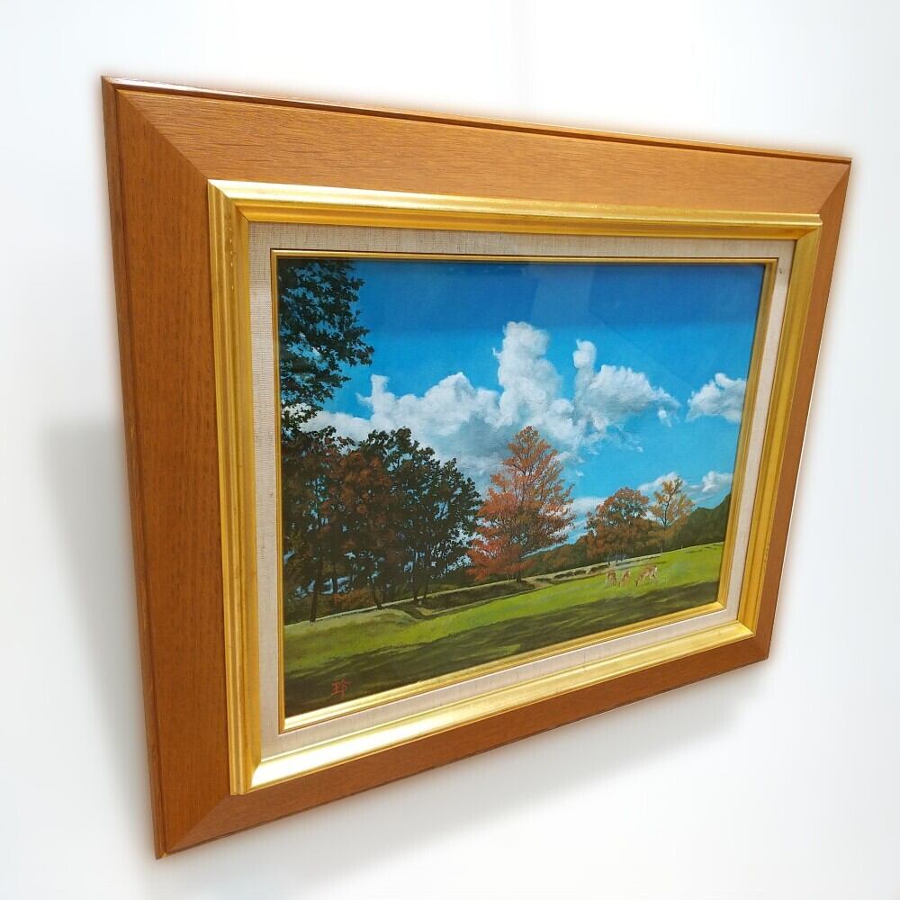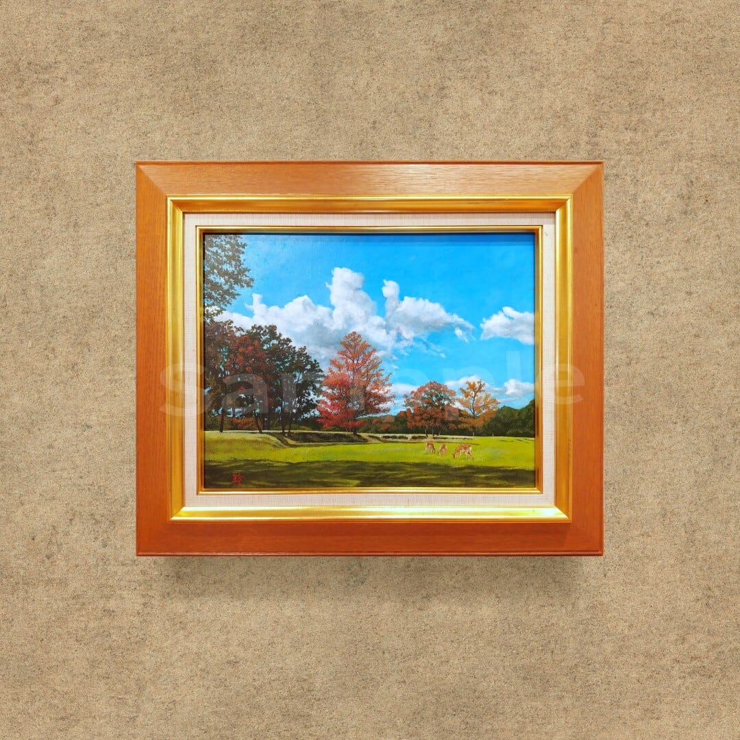 岡本玲『飛火野 秋』F6 肉筆画 キャンバス 額縁付き